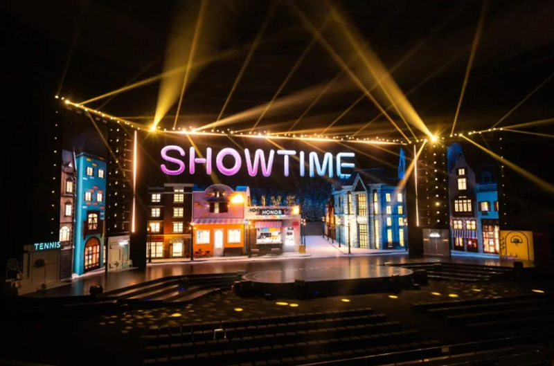 舞臺設計也花了不少心思。在極簡的科技大屏基礎上,創(chuàng)意性地將網(wǎng)球場地、街頭籃球框、休閑咖啡廳等年輕人熱衷的生活與運動場景搬上舞臺。這些熟悉的元素不僅打破了傳統(tǒng)新機發(fā)布會的冰冷感,更打造了一個松弛、自在的沉浸式空間,讓科技與年輕人的日常生活無縫連接。