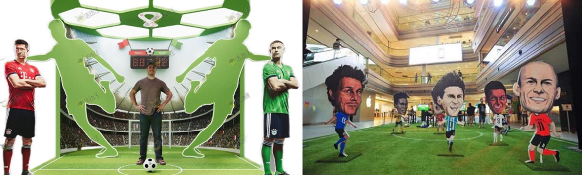 2 外場布置(現(xiàn)場鋪設(shè)仿真草坪,設(shè)置合影背景板、著名球星人形立牌,并放置足球便于來賓拍照打卡,營造世界杯體驗(yàn))